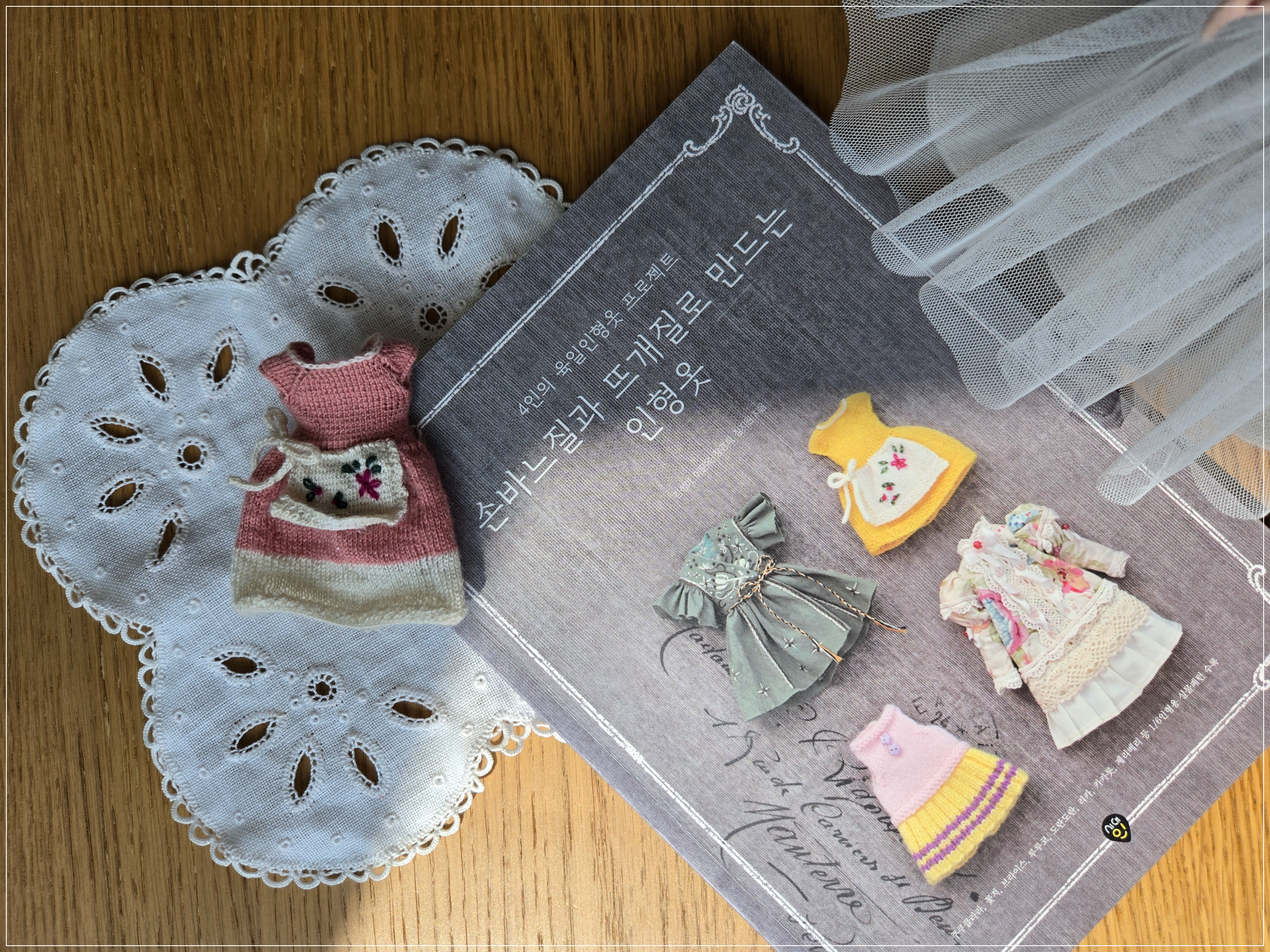 끝을 알 수 없는 호기심에 야심 차게 시작했다가 허무하게 끝나기를 반복했던 취미들이 "나 여기에 있다." 하고 존재감을 드러내듯 ⟪손바느질과 뜨개질로 만드는 인형 옷⟫이란 책이 오늘따라 유난히 눈에 들어 내용을 정리하다 보니 다시금 새롭게 느껴지고 완성하고 싶은 새로운 작품들이 눈에 밟혀 오랜만에 나대는 심장의 두근거림도 느꼈습니다.